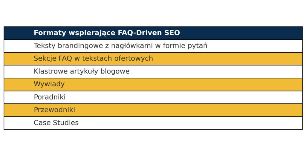 Jakie formaty treści wspierają FAQ-Driven i SEO?